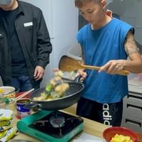 第一次是先挑戰簡單的炒泡麵,過程中磕磕碰碰,但那天的泡麵,是誰都沒吃過的「幸福味道」。
